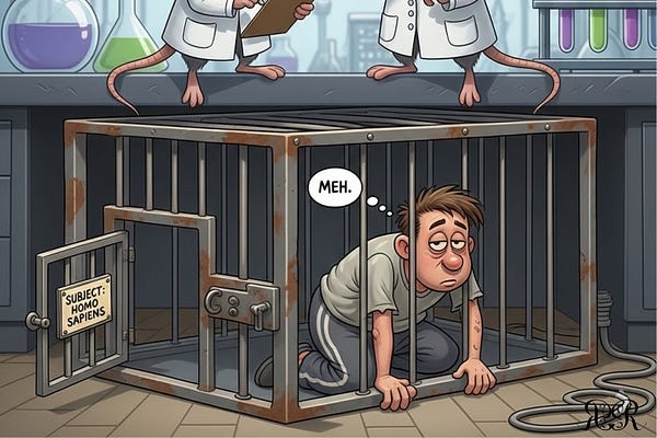Humorná poviedka - V laboratóriu vládnu myši. Profesor Mac Mouse a magister Miky vedú pokusy na ľuďoch. Objavte absurdný a vtipný svet etológie naruby.